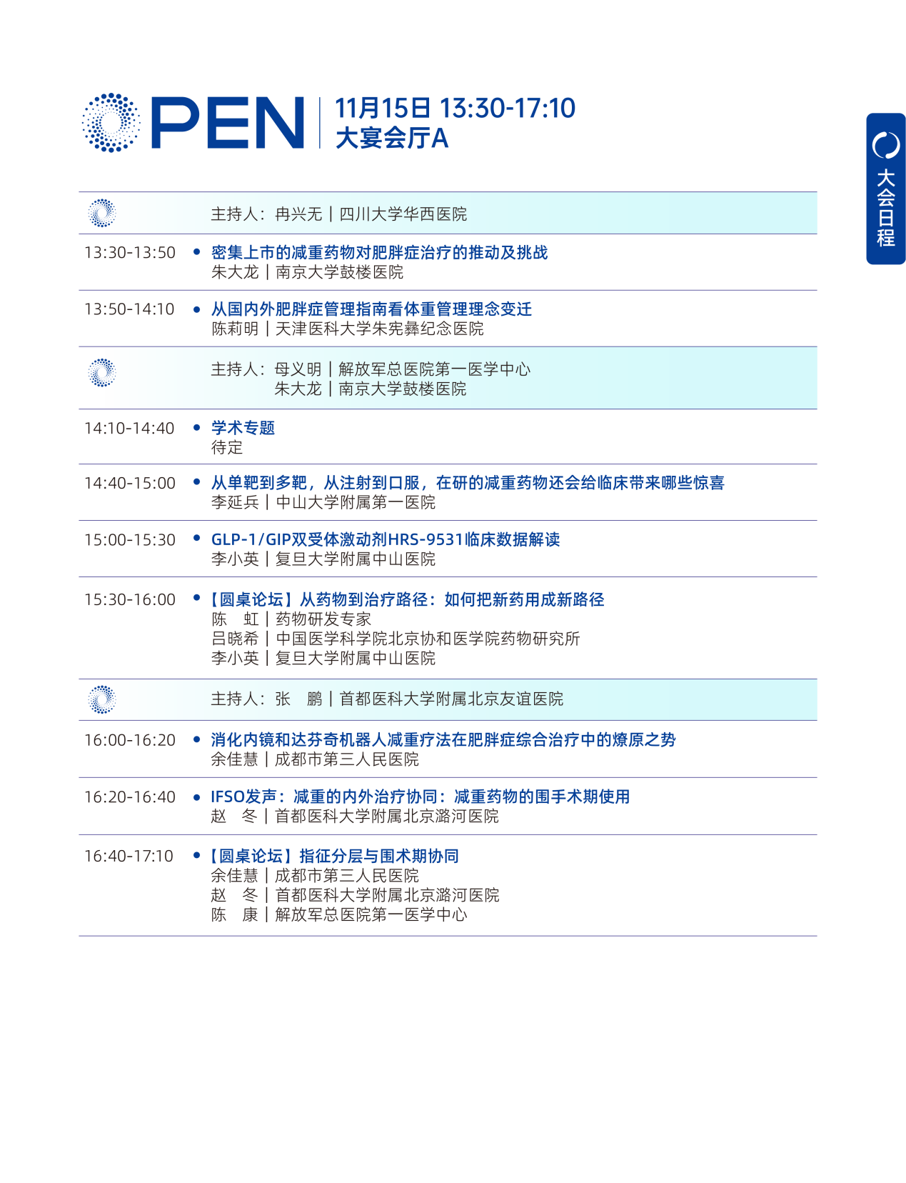 大会汇聚国内外肥胖防控领域顶尖学术与临床力量。权威专家将携全球前沿循证研究成果、本土化临床实践经验及深度行业发展洞察,为参会者打造兼具专业深度与实践价值的学术交流盛宴。大会日程(拟定)如下: